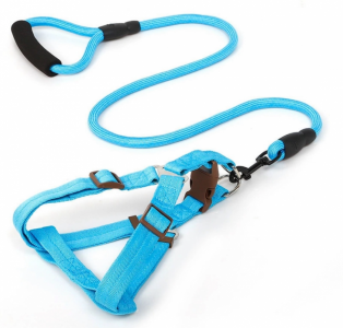Шлея та повідець для собак, круглий шнур з пінною ручкою, шлея 1,530-50 см, повідець 120 см блакитний