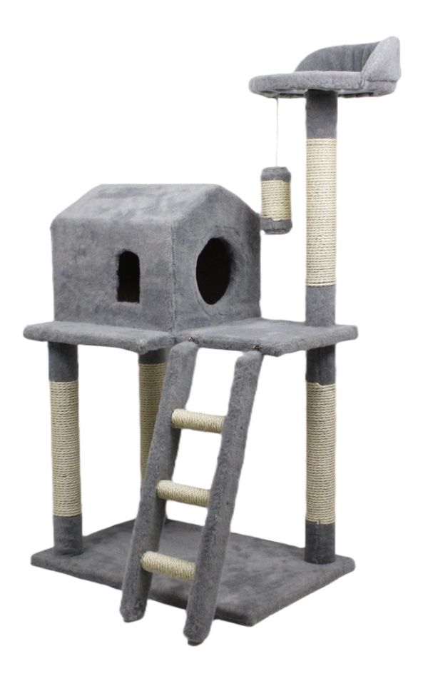 Будиночок+Драбинкадряпка Сіра. Висота 118 див, довжина 60 див, ширина 40 див. є драбинка 55185см сходи 13см яких виготовлені з сизалю. Будка 353030см, вхід до неї 1818см, оснащена маленьким віконцем 128 см, щоб улюбленцю було приємніше спостерігати навколо. Матеріал хутра.