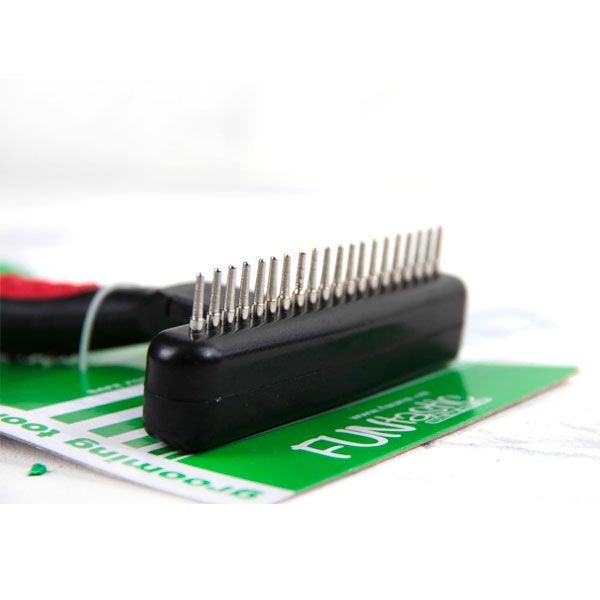 Гребінець-граблі є дуже важливим інструментом для догляду за густою, довгою або жорсткою шерстю.Граблі добре підходять для швидкого та ефективного видалення відмерлого і линяючого підшерстя у собак з довгою і густою шерстю, не пошкоджуючи поверхню шкіри і не травмуючи структуру шерсті.Регулярне розчісування шерсті запобігатиме її сплутуванню і появі ковтунів, збереже шкіру тварини здоровою, а шерсть - блискучою і доглянутою.Розмір:1711 см, ручка 15 см