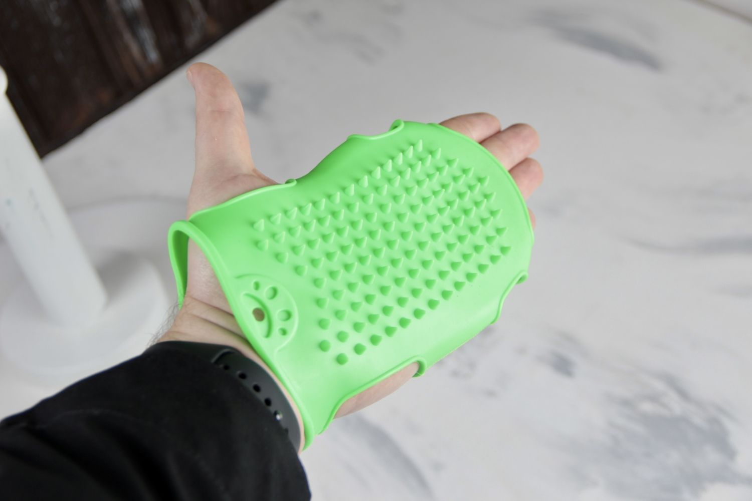 Силіконова рукавиця, двостороння, для собак і кішок.Масажна щітка для дбайливого догляду за волосяним покривом тварин виготовлена із силікону. Щітка стимулює кровообіг, проріджує відмерлу шерсть і частинки пилу. Підходить для чутливих та молодих тварин.Зручно тримати на руці - є прорізи для пальців.Кольори: Рожевий, салатовий, синяяРазмер: 1116,5 см