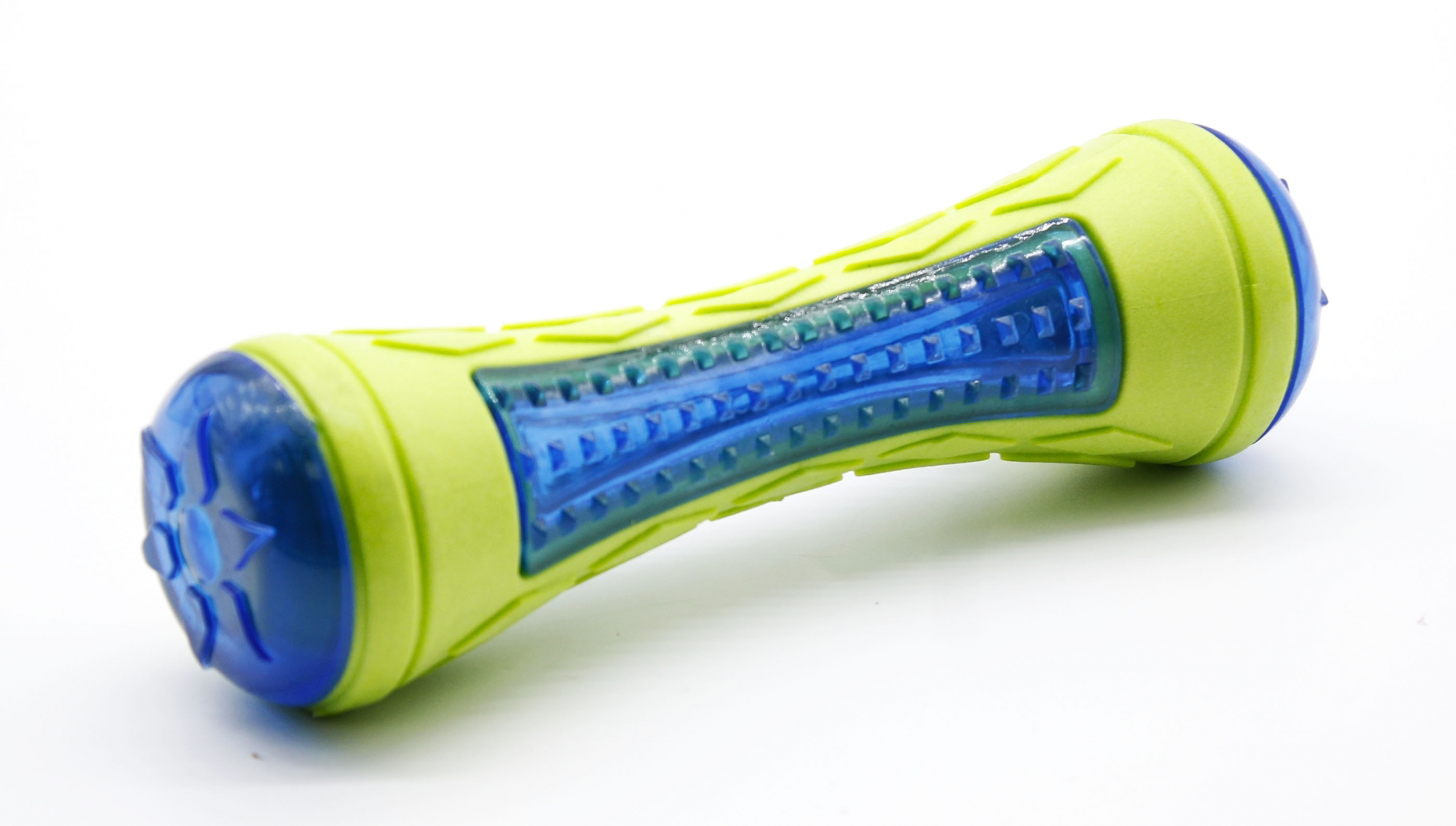 Іграшка гантель з рельєфною поверхнею для собак. Довжина 20 см, світиться і пищить від стискання. Іграшка міцна на укус, призначена для ігор, заохочень, навчання, дресирування собак. У процесі гри очищає зуби від нальоту і масажує ясна. Використання такої іграшки позитивно позначиться на здоровї домашнього улюбленця.Переваги:Рельєфна поверхня масажує і зміцнює ясна.Очищає зуби від зубного каменю і сприяє їх здоровому росту.Допоможе при прорізуванні зубів, позбавить від свербіння.Задовольняє потребу щось кусати і жувати, захищаючи від псування домашні меблі.Міцна і еластична, витримує зуби собаки.При стисканні пищить і світиться.Виготовлена з безпечної і нетоксичної гуми (TPR).
