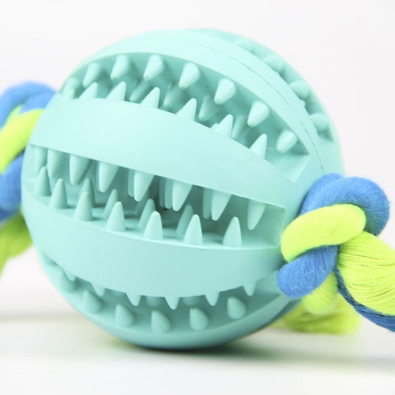 Канат кольоровий двовузловий з дентал мячем d 7см 28 см