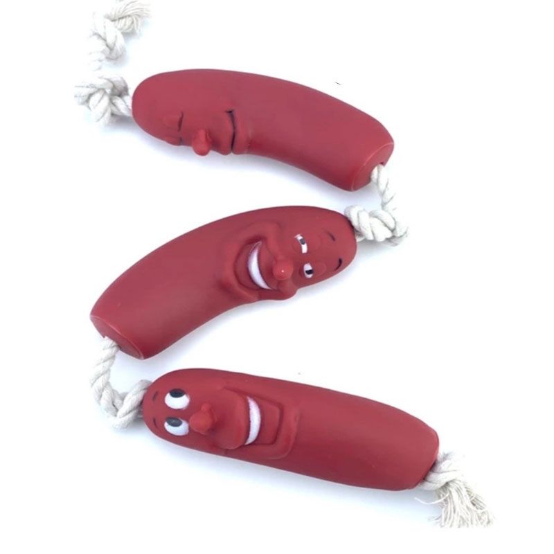 Іграшка для собак веселі сосиски на мотузці 3 шт 075