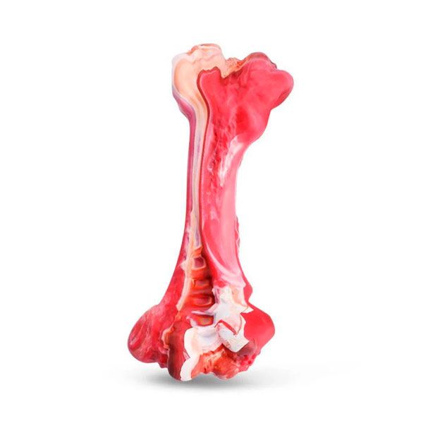 Матеріал - силікон і каучук з ароматом яловичини.Кістка міцна, прекрасно гнеться, стискається, але при цьому ніяких деформацій не відбуваєтьсяСобака із задоволенням гризе і мусолить - пахне ж як яловичиноюІдеально чистить зубний наліт