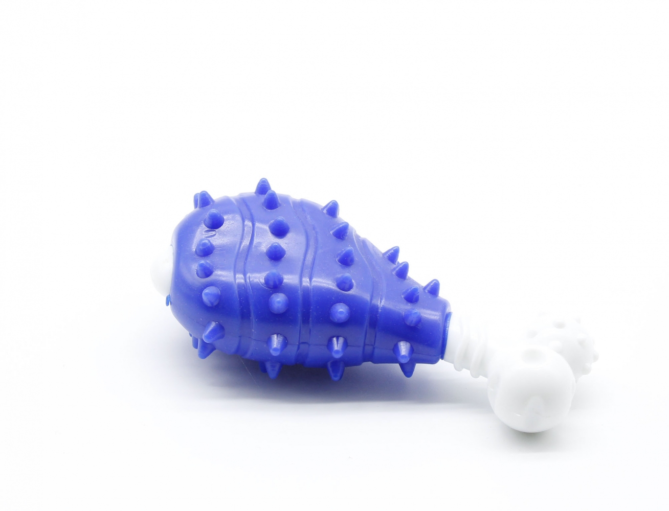 Жувальні іграшки просто знахідка для тих випадків, коли у цуценят ріжуться зубки. Але і дорослі особини також зрадіють можливості щось пожувати.Іграшка це не просто спосіб відволікти вихованця від меблів і розважити його. Граючись, собака виявляє свій тваринний інстинкт, навчаючись охороняти територію. Словом, активно і з цікавістю готується до дорослого життя. І тільки в силах господаря зробити так, щоб ця підготовка виявилася якісною. Іграшка виготовлена з пластику, покрита вініловою намоткою (ПВХ), яка має спеціальні шипи і призначена для догляду за зубами. Вінілова намотка має приємний запах мяти. Запобігає утворенню зубного каменю.