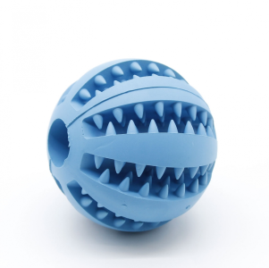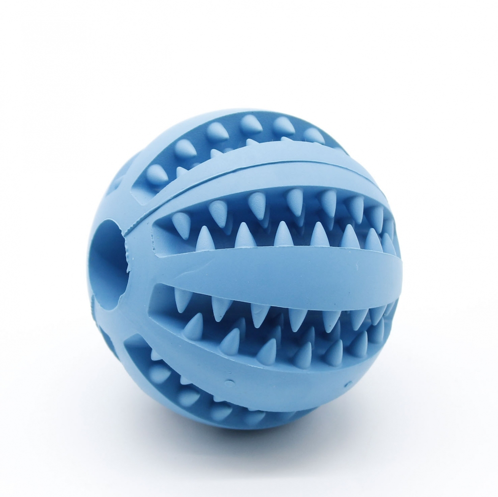 Іграшка з особливими шипами для масажу ясен і додаткового догляду за порожниною рота собаки. Мячик має рельєфні вставки, які при гризінні собакою сприяють очищенню зубів і профілактиці утворення зубного нальоту і зубного каменю. У поздовжні рельєфні області можна помістити шматочки ласощів або корму, що сприятиме привчанню собаки до жування спеціальних іграшок, а не предметів інтерєру, плюс приємний бонус для вашого вихованця, коли він залишається один. Виготовлений мяч з натурального каучуку має ментоловий аромат і повністю безпечний для здоровя собаки.