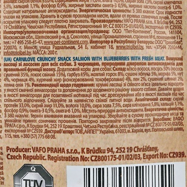 Ласощі Carnilove Crunchy with Salmon Blueberries - беззерновое для собак усіх порід Снек з лососем та чорницею 200 г