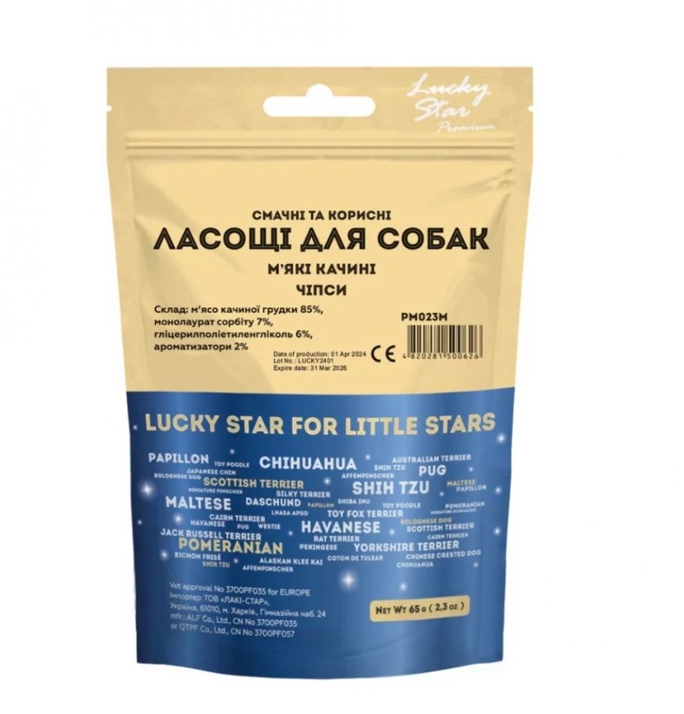 Luckystar Качині Мякі Чіпси для собак 65г.
