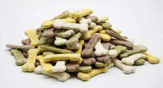 Натуральне печиво для собак Кісточки MIX L 80962 - Натуральне ласощі для Вашої собаки, виготовлений за найвищими стандартами Євросоюзу - Печиво ідеальним чином підійде як ласощі за хорошу поведінку, або заохочення при тренуваннях - Володіє відмінними смаковими якостями - дуже подобається навіть вибагливим собакам - В одній пачці 4 смаки: шоколадний (коричневе печиво), банановий (помаранчевий), овочевий (зелений), ванільний (жовте) - Добре транспортується, не кришиться - Зручна упаковка з застібкою zip-lock Склад: Пшеничне борошно, рослинний жир, сухе знежирене молоко, яєчний порошок, цукор, натуральні ароматизатори та барвники Виробник: Lolo Pets, Польща Зовнішній вид печиваЯк купити Печиво для собак Кісточки MixДля купівлі будь-якого товару, який Вас цікавить достатньо звязатися з нашими менедежерами або оформити замовлення через корзину.