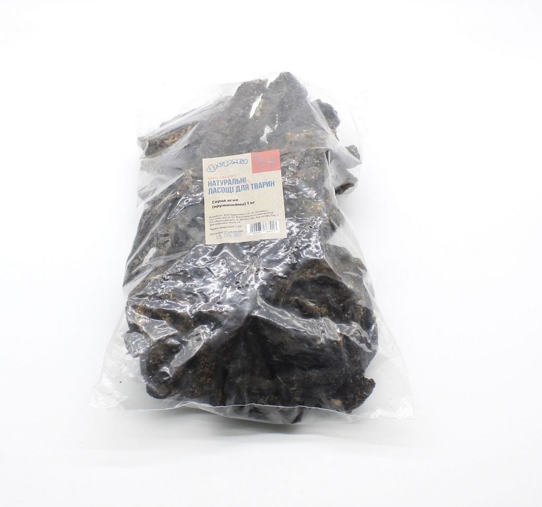 Серце ягняти (кружечками) 1 кг (26 шт. - 136 см)Натуральні ласощі для собак серце ягняти сушене кільцями - дієтичне, багате на білок, джерело заліза і мікроелементів, ароматне. Підходить навіть для собак з чутливим травленням або алергією на інші види мяса.Сушене серце - це абсолютно натуральний продукт, виготовлений з мяса вищої якості, що не містить штучних барвників і ароматизаторів. Сушене серце ідеально підходить в якості повсякденного ласощів і заохочення при дресируванні, а завдяки високому вмісту білка сприяє швидкому втамуванню голоду і заповненню сил під час тривалих прогулянок.Рекомендується для собак всіх порід і всіх вікових груп, особливо для собак з віковими змінами зубощелепного апарату і з неповною зубною формулою.100 НАТУРАЛЬНИЙ продукт без барвників, консервантів і підсилювачів смаку.Переваги:100 натуральні ласощібагаті на вітаміни і мікроелементи, природне джерело білка і залізане містять барвників і консервантівмають привабливий для собак аромат і смакзміцнює зуби, ясна, щелепи, покращує апетит собакичудово сприяє задоволенню жувального рефлексу собакгіпоалергенний делікатес, ідеальний для собак з чутливим шлункомальтернатива свіжим шматками мяса.