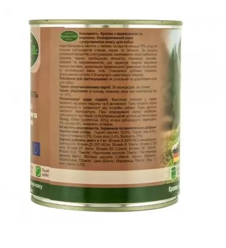Baskerville Кролик вермішель морква консерви для собак 400 гр