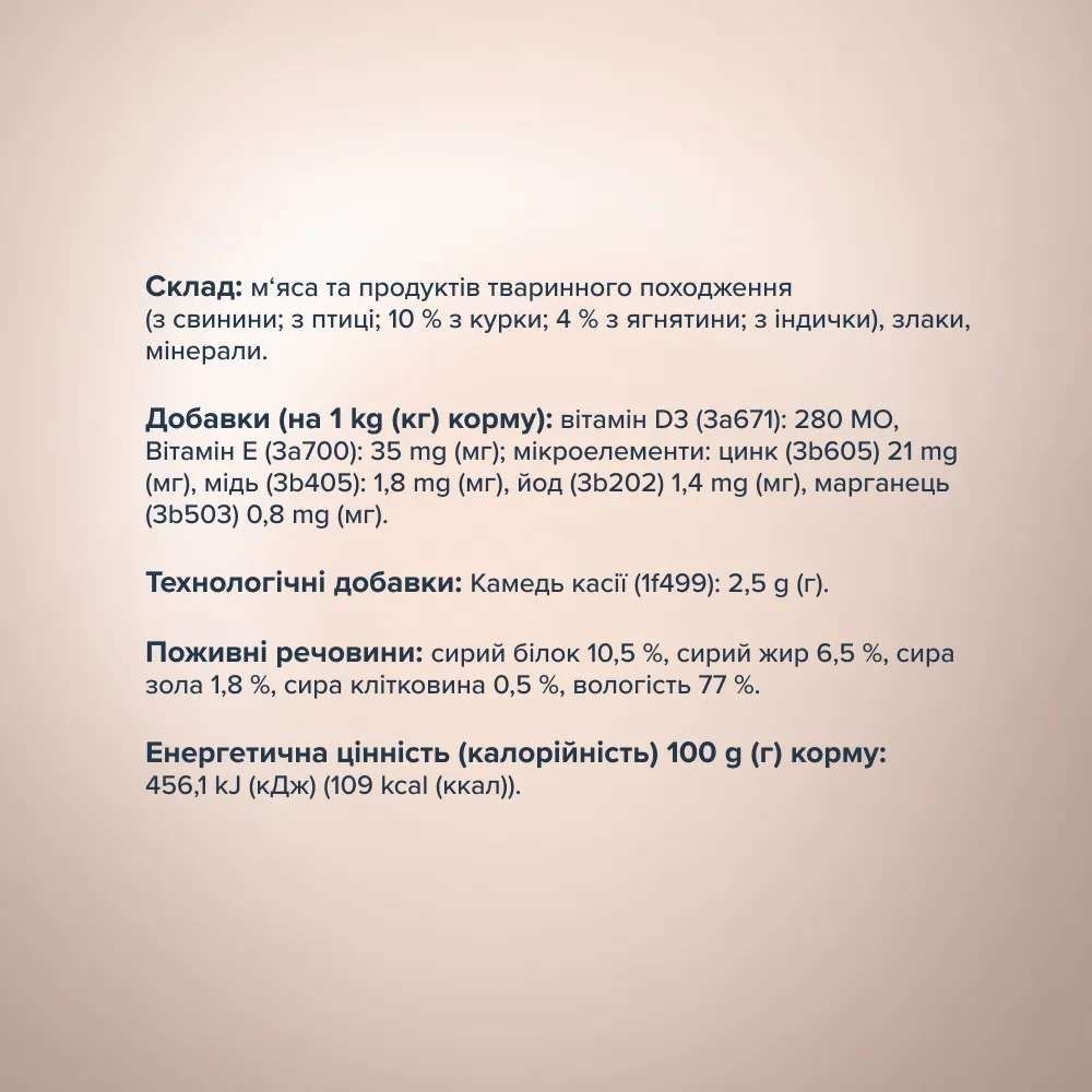 Вологий корм Club 4 Paws Premium Selection для дорослих собакпоживний, смачний та повноцінний раціон преміум класу для вашого вихованця.смак паштету ніжний та збалансованийпідтримує шкіру здоровою, а шерсть блискучоюпідтримує здоровя та імунітет улюбленцябез штучних ароматизаторів та барвниківРекомендації щодо вживання:підігрійте корм до кімнатної температуризабезпечте тварині постійний доступ до чистої та свіжої питної водиЗберігання:в прохолодному, сухому місці, захищеному від потрапляння прямих сонячних променів