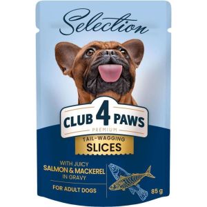 Club 4 Paws Premium Selection Вологий корм для собак малих порід, шматочки з лососем і макреллю в соусі 85г
