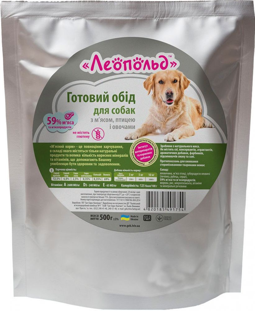 Леопольд консерви для собак з мясом, птахом і овочами 500 гр