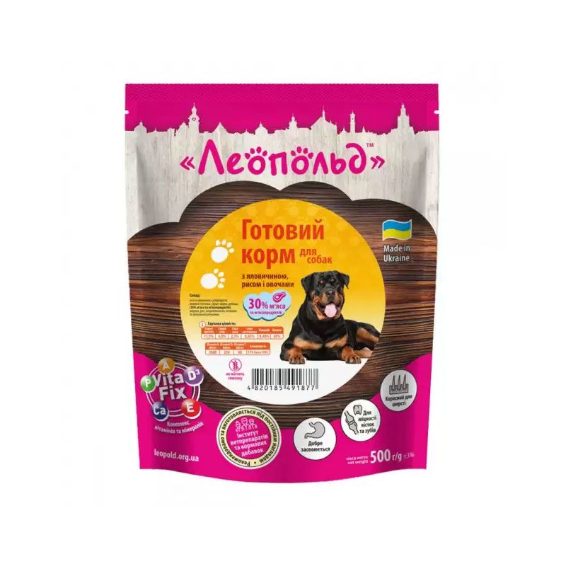 Леопольд консерви для собак з яловичиною, рисом і овочами 500гр 491877