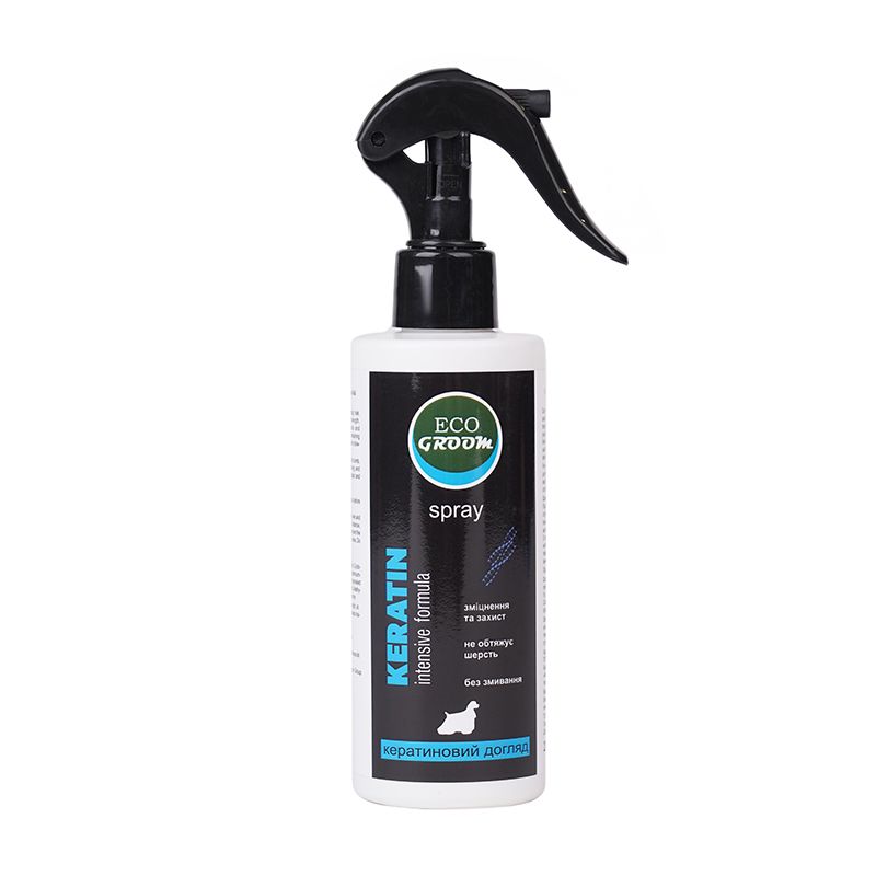 Ecogroom Спрей з креатином для інтенсивного відновлення всіх типів шерстіСпрей з креатином ефективно доглядає за шерстю собак, повертаючи їй еластичність і природну силу. Гідролізат кератину відновлює, ущільнює і вирівнює структуру вовни, що забезпечує збереження водного балансу, охороняє від дії високих температур при сушінні феном.Регулярное использование спрея облегчает расчесивание, устраняет ломкость шерсти, возвращает ей блеск и гладкость, препятствует спутивание и образование колтунов.Способ примененияПеред использованием флакон обязательно встряхнуть в течение 3-5 секундНаносить спрей на чистую, сухую или слегка влажную и подсушенную полотенцем шерсть собакиНа расстоянии 15-20 см равномерно нанести, необходимое спрея по всей шерсти животного.Избегать попадания в глаза нос и уши. Не смивать.Подходит для ежедневного использования.СоставAqua, Cetrimonium Chloride, Cyclomethicone, Hydrolyzed Keratin, PEG-40, Castor Oil, Parfum та інші.Зберігати у закритому флаконі, не допускати попадання прямих сонячних променів, при температурі від 5 до 25 градусів в місцях, недоступних для дітей і тварин.Термін придатності24 місяці