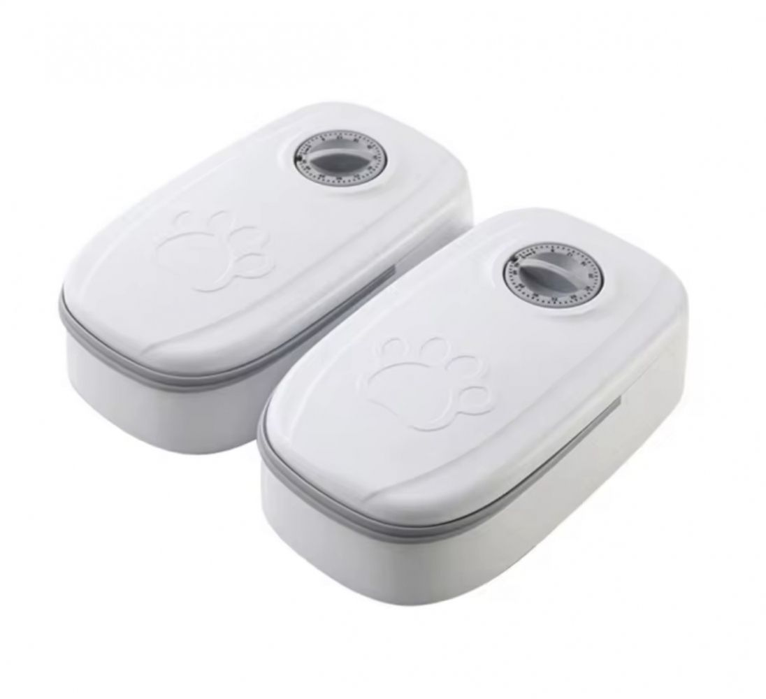 Автоматична годівниця з таймером БІЛО-СІРА 350 мл 2 миски 24248 см.