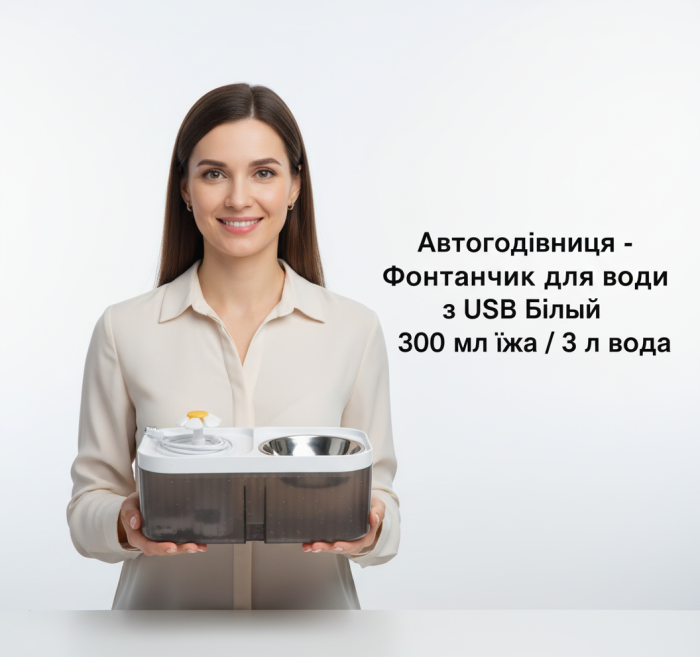 Автогодівниця - Фонтанчик для води: з USB Білий 300 мл 3л.