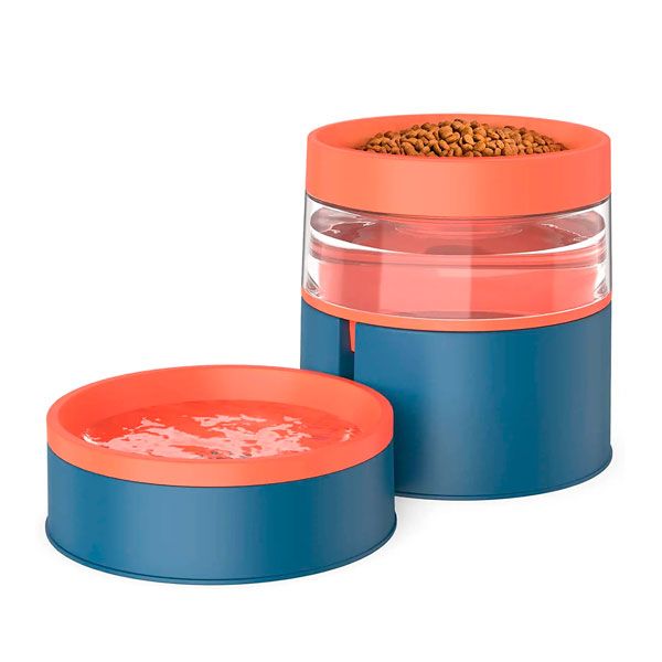 Автопоїлка з мискою 14х14х27 см Помаранчево-синя