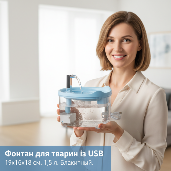 Фонтан для тварин із USB 19x16x18 см. 1,5 л. Блакитний