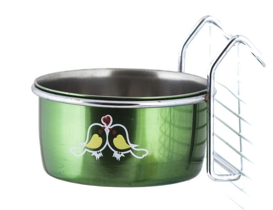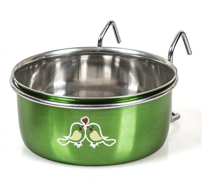 Годівниця підвісна на гачках металева Зелена. 300 мл 9,5 см.