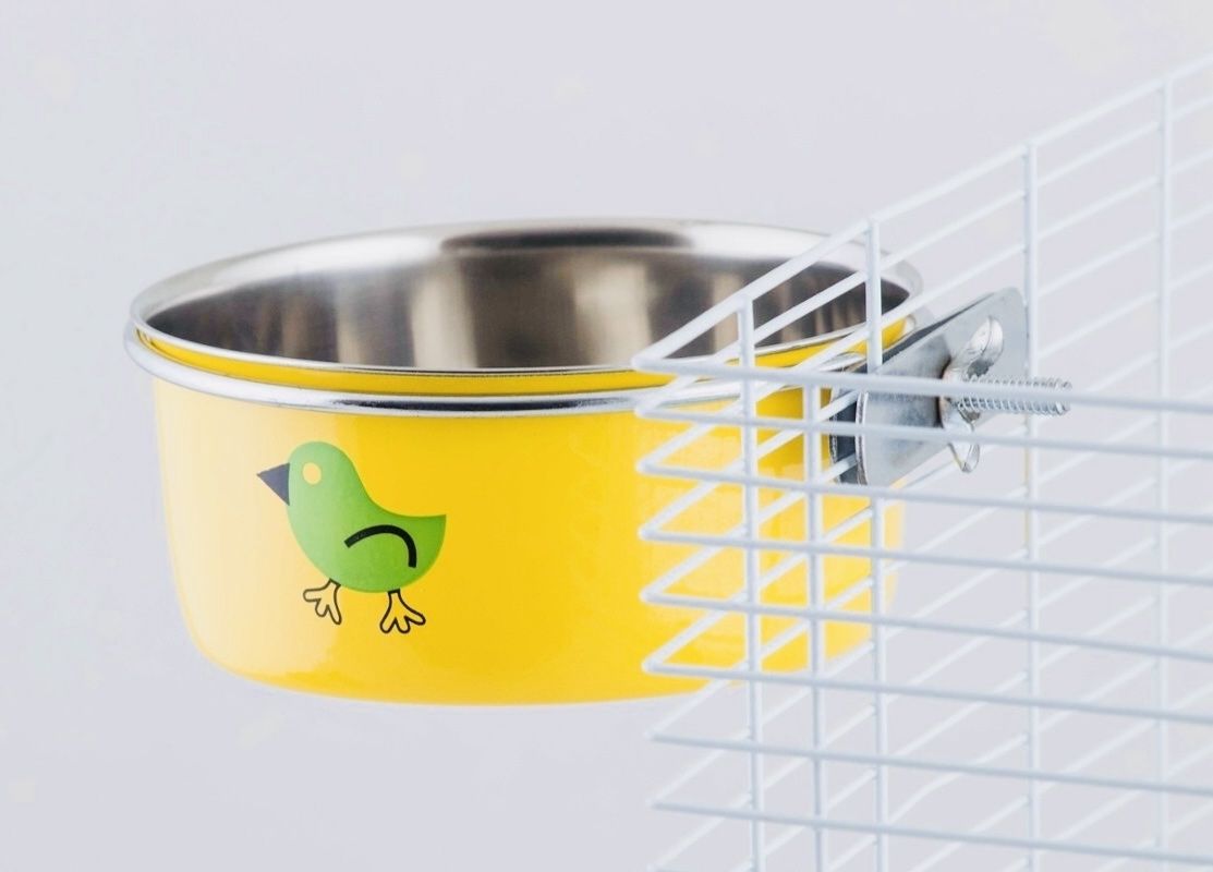Класична миска для води з нержавіючої сталі - відмінне рішення для тих, хто шукає чистий і естетичний спосіб забезпечити своїх вихованців водою. Тепер ваша тварина може вільно нею користуватися, а ви можете заощадити місце в клітці, повісивши миску на сходинки. Більше не потрібно збивати чашу і розливати воду на тирсу.Миска з нержавіючої сталі призначена для годування і поїння птахів, гризунів, також може використовуватися для собак і кішок.Миска має більш широкий заокруглений край, що дозволяє домашнім тваринам вільно і безпечно користуватися нею.Практична ручка дозволяє кріпити миску до сходинок клітки, що робить її стійкою.Продукт добре працює під час виставок, розведення або подорожей.