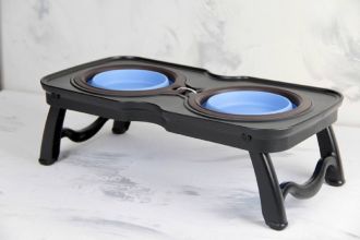 Розкладний бар з мисками для собак.Колір може відрізнятися від кольору на фото, перед замовленням уточнюйте колір.Миски складні силіконові, легко мити.На ніжках бару антиковзаюче покриття.