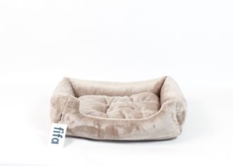 Прекрасна лежанка виготовлена з мякого плюшу, синтетичного матеріалу з невисоким (4-5 мм) ворсом, гарна на вигляд, дуже мяка та приємна на дотик. Усередині мяка подушка, наповнена синтепоном, виймається. Бортик міцний, чудово тримає форму та колір, його легко чистити від вовни.