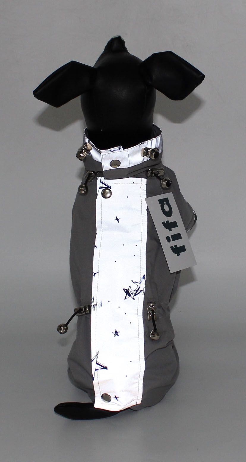 Дощовик із плащової тканини. Підклад-підкладковий шовк. На блискавці. Регулювання за обсягами. Світовідображаючі вставки.РозмірПородаДовжина спини, смОкружність грудей, смВага тварини, кгXXSЙоркширський терєр, той-терєр, чихуа-хуа, цуценята18-22 см25-31 смдо 1,4XSЙоркширський терєр, той-терєр, чихуа-хуа23-25 см32-40 смдо 2,2SЙоркширський терєр, той-терєр, чихуа-хуа26-29 см40-45 смдо 3S1Йоркширський терєр, пекінес (маленький), безпородні30-33 см40-46 смдо 4,5S2Пінчер, йоркширський терєр, пекінес, цуценята26-29 см46-57 смдо 4,5S3Мопс (маленький), ши-тцу, пекінес30-33 см46-57 смдо 6МТакса міні, чубата собачка, пудель, ши-тцу, фокс-терєр, безпородні33-37 см41-53 смдо 7М1Мопс (середній)31-37 см51-68 смдо 10LТакса (середня), спанієль дрібний38-43 см47-58 смдо 9L1Французький бульдог, мопс великий, спанієль середній38-43 см59-70 смдо 12XL1Боксер, спанієль, стаффордширський терєр50 см50-58 смдо 25XXLСтаффордширський терєр, такса54 см52-63 смдо 35XXL1Стаффордширський терєр50-55 см75-95 смдо 50XXXLРетривер, доберман, лабрадор, вівчарка, ротвейлер56-69 см85-105 смдо 60