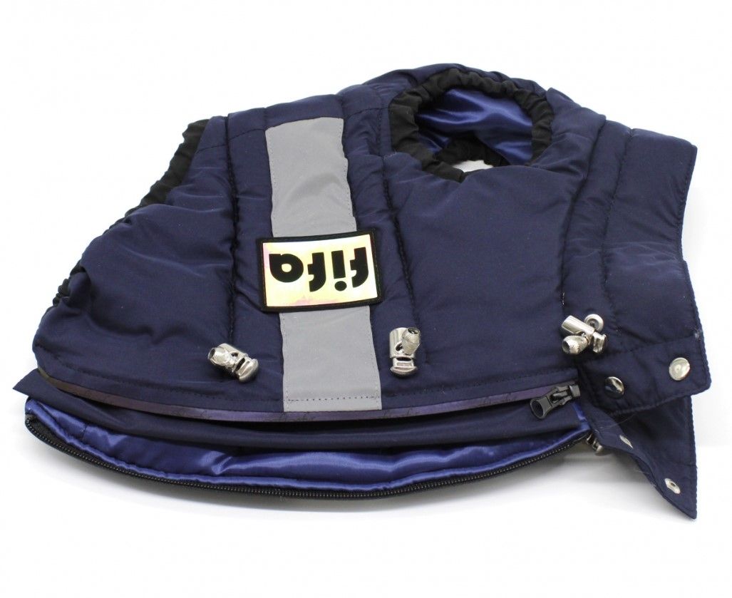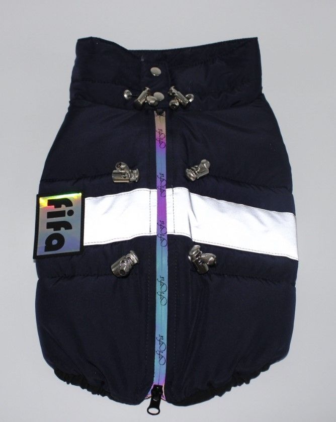 Жилет на силіконовому наповнювачі для утепленняБез капюшонаНа блискавці - зверніть увагу, блискавка брендована та світовідображаючаНа грудині, посередені та на комірці утяжки для кращоі фіксаціі та посадкиВерх плащівкаПідклад-підкладочний шовкБрендована нашівка FIFA з дзеркальним блискомПо всьому жилету декор - світовідображаючі та світовідбіваючи стрічкиРозмірПородаДовжина спини, смОкружність грудей, смВага тварини, кгXXSЙоркширський терєр, той-терєр, чихуа-хуа, цуценята18-22 см25-31 смдо 1,4XSЙоркширський терєр, той-терєр, чихуа-хуа23-25 см32-40 смдо 2,2SЙоркширський терєр, той-терєр, чихуа-хуа26-29 см40-45 смдо 3S1Йоркширський терєр, пекінес (маленький), безпородні30-33 см40-46 смдо 4,5S2Пінчер, йоркширський терєр, пекінес, цуценята26-29 см46-57 смдо 4,5S3Мопс (маленький), ши-тцу, пекінес30-33 см46-57 смдо 6МТакса міні, чубата собачка, пудель, ши-тцу, фокс-терєр, безпородні33-37 см41-53 смдо 7М1Мопс (середній)31-37 см51-68 смдо 10LТакса (середня), спанієль дрібний38-43 см47-58 смдо 9L1Французький бульдог, мопс великий, спанієль середній38-43 см59-70 смдо 12XL1Боксер, спанієль, стаффордширський терєр50 см50-58 смдо 25XXLСтаффордширський терєр, такса54 см52-63 смдо 35XXL1Стаффордширський терєр50-55 см75-95 смдо 50XXXLРетривер, доберман, лабрадор, вівчарка, ротвейлер56-69 см85-105 смдо 60
