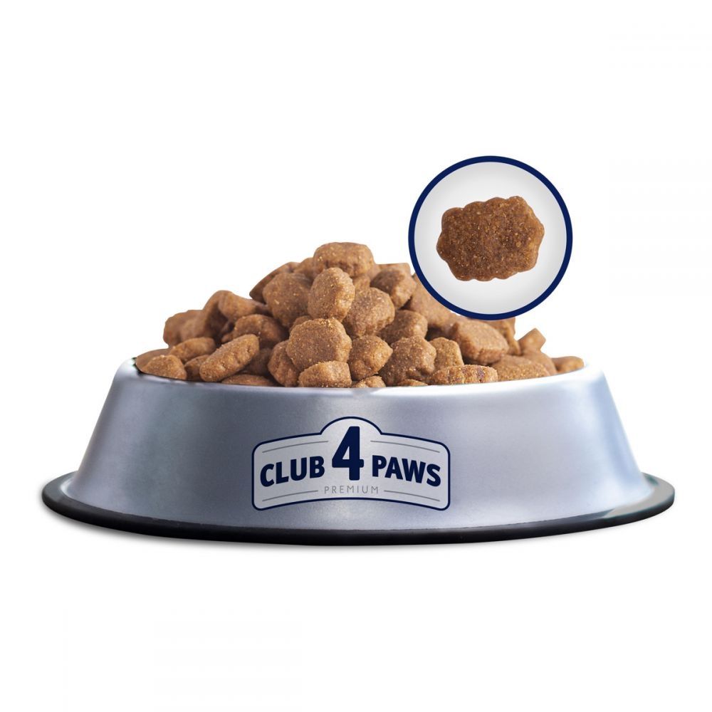 Сухий корм для собак великих порід Club 4 Paws Premium Adult large BreedsПовноцінний раціон Club 4 PAWS Premium Adult large Breeds розроблений з урахуванням фізіологічних потреб дорослих собак. Продукт збалансований за поживними і корисними речовинами, відповідає нормам годування вихованців великих порід.Склад корму:Формула продумана спеціально для собак старше 1 року і вагою від 26 кг до 90 кг.вміст сирого протеїну не менше 25. У складі повністю відсутні синтетичні барвники та підсилювачі смаку. Основні компоненти:тваринний білок: курказлаки: рис, кукурудза, ячміньжирклітковинаКорм містить корисні добавки, вітамінний комплекс, мінерали та мікроелементи, поліненасичені жирні кислоти, компоненти зі спеціальної розробки INTEGRAMIX. Піклуватися про фортеці кісток і суглобів допомагають хондропротектори: глюкозамін і хондроїтин.Ключові особливості Club 4 Paws Premium Adult Large BreedsВсі корми лінійки створюються за спеціальними рецептами з урахуванням особливостей харчування. Для улюбленців великих розмірів розроблена рецептура, що дозволяє забезпечити собаку всіма необхідними речовинами для здорового та активного життя. Достатня кількість протеїну тваринного походження забезпечує підтримку нормальної ваги, формування мязової маси, здоровя суглобів. Переваги корму:основний інгредієнт-мясоповноцінний раціон вихованцяспеціальна форма крокетунабір вітамінів, мінералів і антиоксидантів у складі.Продукт спрямований на підтримку здоровя вихованця і зручність власника. Високоякісний корм з правильним балансом білка, мінералів і вітамінів відмінний спосіб смачно і корисно нагодувати собаку.Рекомендації по годівліДля визначення обсягу порції береться до уваги вага і вік улюбленця, рівень активності, умови утримання. Рекомендується давати корм приблизно в один і той же час і дотримуватися норму годування. Обовязково контролюйте питний режим вихованця. При переході з іншого харчування корм слід додавати до основного поточного раціону поступово протягом 5 днів, спостерігаючи за самопочуттям і активністю тварини.