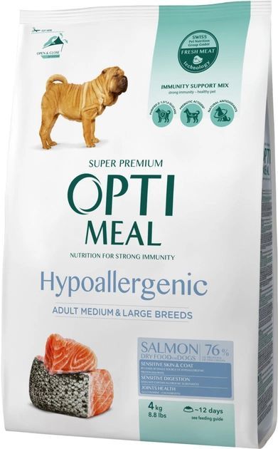 Акція Optimeal Сухий гіпоалергенні повнорационний корм для собак середніх і великих порід зі смаком лосося 4,0кг (-25)