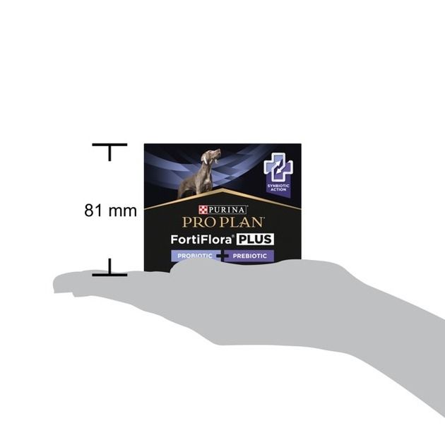 Purina Pro PlanFortiFloraPLUS-додатковий корм для дорослих собак та цуценят (після відлучення від матері) із синбіотичною дією пребіотика та пробіотика. Cприяє підтриманню здорового мікробіому, його балансу та зміцненню імунного захисту. Кожне саше містить гарантований рівень пробіотичних бактерій (мікрокапсульованих для підвищення стабільності в середовищі та ефективності) в поєднанні з пребіотиком рослинного походження.Синбіотична дія пробіотика та пребіотика для підтримання здорового мікробіома кишечникаМістить той самий пробіотичний штам, що і Purina Pro PlanFortiFlora (живі молочнокислі бактерії SF68) для підтримання здоровя кишечника та сприяння зміцненню імунної системиКрім того, він містить пребіотичні волокна рослинного походження (псилліум) для стимуляції росту корисних бактерій у кишечникуЧудовий смак: можна легко висипати вміст саше на корм собаки, тварина їстиме його із задоволенням