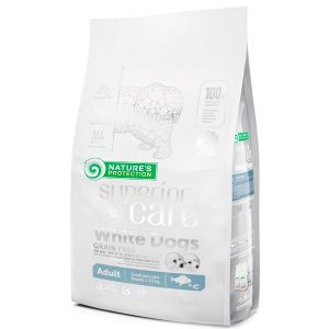 Беззерновий сухий корм для собак дрібних порід із білосніжною шерстю Natures Protection Superior Care White Dogs Grain Free Adult Small and Mini Breeds з білою рибою, 1,5 кг