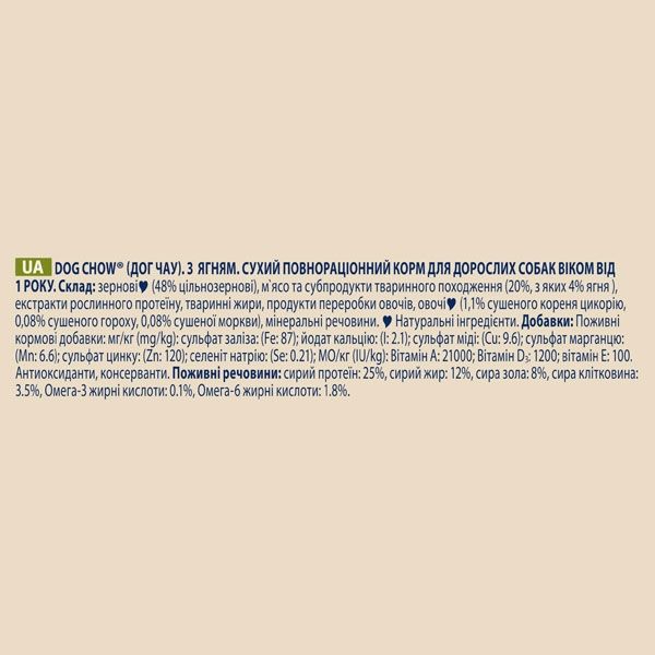 Dog Chow Adult 1+ сухий корм для собак з ягням 2,5 кг