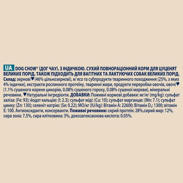 Dog Chow Puppy Large Breed Puppy сухий корм для цуценят великих порід з індичкою, 14 кг