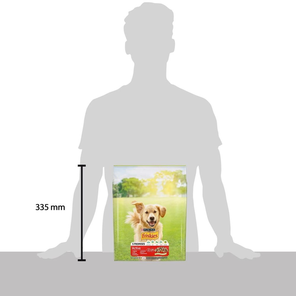 Сухий корм для собак FRISKIES Active розроблений спеціально для улюбленців, що ведуть активний спосіб життя та завжди сповнені енергії для ігор.В той день, коли у вашому домі зявився собака, ви з турботою почали піклуватися про нього, правильно годувати й допомагати жити щасливим і здоровим життям, приносити щоденну радість у ваш дім. Спираючись на багаторічний досвід та експертизу, FRISKIES протягом багатьох поколінь щоденно гарантує якісне та збалансоване харчування для щасливих та здорових собак.Ми піклуємось про вашого собаку і про вас, тому даємо 5 гарантій:Харчування: смачне 100 повнораціонне і збалансоване харчування, з використанням міксу тваринних та рослинних білківЯкість: ми проводимо сотні щоденних перевірок протягом нашого виробничого процесуЕкспертиза: розроблено спеціалістами з харчування тварин PurinaПрозорість: виготовлено з високоякісних інгредієнтів, ретельно відібраних у провідних та надійних постачальниківЗобовязання 2025 року: перейти на 100 використання упаковки, що підлягає вторинній переробці або повторному використанню до 2025 року.До того ж всі наші рецепти вже не містять штучних барвників.Переваги цього корму для собак.Без штучних барвників.Містить на 20 більше вітамінів В та Е ніж сухий корм FRISKIES BalanceДопомагає підтримувати високий рівень енергії.Містить вітаміни A та D.Підтримує здоровя шкіри та блискучість шерсті.Сприяє здоровому травленню.Допомагає підтримувати здоровя ясен.Склад: зернові (цільні злаки 59), мясо та субпродукти тваринного походження (8, що еквівалентно 16 дегідратованого мяса та субпродуктів тваринного походження, з яких мін 4 яловичини), рослинні олії та тваринні жири, продукти переробки овочів, екстракти рослинного протеїну, мінеральні речовини.Добавки: Поживні кормові добавки: МОкг(IUkg): вітамін А: 22800 вітамін D3: 1300 вітамін Е: 108 мгкг(mgkg): сульфат заліза: (Fe: 94) йодат кальцію: (I: 2.3) сульфат міді: (Cu: 10.5) сульфат марганцю: (Mn: 7.1) сульфат цинку: (Zn:140) селеніт натрію: (Se: 0.23) вітаміни групи В: 90.Барвники, консервант та антиоксиданти. Без штучних барвників.Поживні речовини: сирий протеїн: 20, сирий жир: 10, сира зола: 8, сира клітковина: 3.5, Омега-6 жирна кислота: лінолева кислота: 1.7, Омега-3 жирна кислота: ліноленова кислота: 0.1.Рекомендації щодо годівлі (грамдобу):Вага тварини кгkg: Звичайна активність, Підвищена активність, Висока активність, Кількість корму гg:ДУЖЕ МАЛИЙ 15 кгkg: 40120 гg 45135 гg 50155 гgМАЛИЙ 510 кгkg: 120190 гg 135215 гg 155245 гgСЕРЕДНІЙ 1025 кгkg: 190350 гg 215400 гg 245455 гgВЕЛИКИЙ 2545 кгkg: 350515 гg 400590 гg 455670 гgДУЖЕ ВЕЛИКИЙ 4570 кгkg: 515695 гg 590795 гg 670900 гg.Кількість корму розрахована для помірно активних собак та собак із підвищеним рівнем активності за нормальної температури оточуючого середовища. Добова норма може змінюватись в залежності від індивідуальних потреб собаки та має бути адаптована таким чином, щоб зберегти його струнку та здорову статуру. Свіжа чиста питна вода повинна бути доступною тварині в будь-який час.Рекомендації щодо зберігання.Зберігати сухий корм для собак у сухому прохолодному місці. Дату Вжити до кінця, реєстраційний номер фабрики та номер партії: дивіться на упаковці.Iмпортерпідприємство, що приймає претензії та запитання споживачів: ТОВ Нестле Україна, 03150, Україна, м. Київ, вул. Велика Васильківська, б. 139.