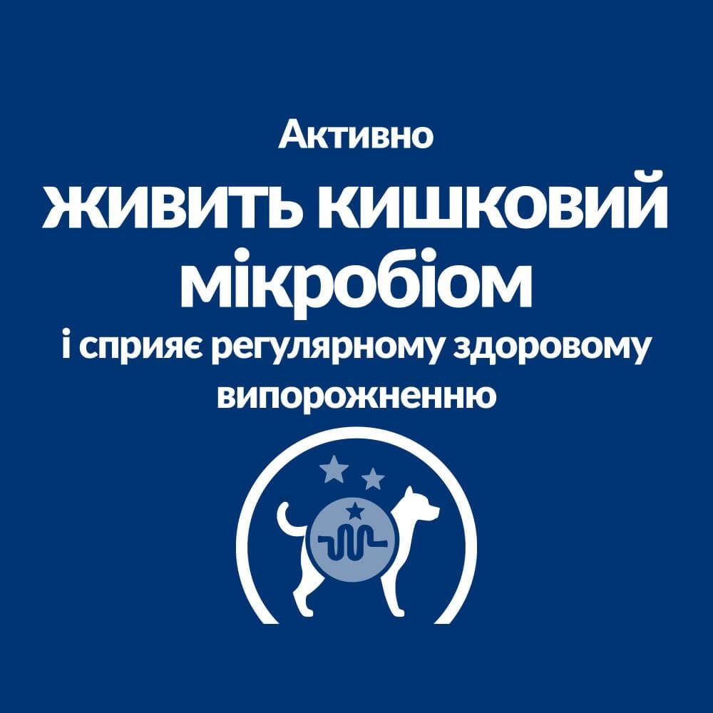 Hills Prescription Diet Gastrointestinal Biome-сухий корм з куркою для собак. Легкоперетравна повнораціонна дієта для зменшення прояву розладів шлунково-кишкового тракту та покращення всмоктування поживних речовин у разі порушення травлення у дорослих собак. Цей раціон збагачений клітковиною і містить підвищений рівень натрію і каліюКорм для собак Gastrointestinal Biome розроблений дієтологами і ветеринарними фахівцями з використанням передової технології інгредієнтів ActiveBiome+ від hills, яка має клінічно доведену здатність живити мікробіом для здорового травлення і гарного самопочуття.Рекомендації: рекомендується для годування дорослих собак при захворюваннях шлунково-кишкового тракту, що піддаються корекції за допомогою клітковини.Унікальна суміш харчових волокон ActivBiome + підтримує Регулярний нормальний стілець, живить і активує мікробіом кишечника для утворення корисних речовин з антиоксидантними і протизапальними властивостямиСприяє тривалій підтримці здоровя шлунково-кишкового трактуРозчинна і нерозчинна клітковина допомагають при захворюваннях шлунково-кишкового тракту, що піддаються корекції за допомогою клітковиниОмега - 3 жирні кислоти допомагають перервати цикл запаленняПеретравність білка сприяє легкому засвоєнню незамінних амінокислотГарбуз є джерелом клітковини для підтримки здоровя травленняЖир забезпечує належне надходження нутрієнтів з меншим обємом кормуS + OXSHIELD: спеціальна формула сприяє оздоровленню сечовидільної системи у тварин, завдяки чому зменшується ризик утворення струвітних і кальцій-оксалатних каменів