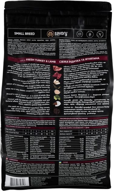 Savory Small Breed rich in Fresh Turkey and Lamb Сухий корм для собак малих порід зі свіжим мясом індички та ягнятиною 3 кг