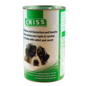 Criss консерви для собак соковиті шматочки кролика з морквою 1.2 кгВологий корм Крісс-смачненьке, одночасно якісне харчування для вашого улюбленця. До складу кожного рецепту ми додаємо тільки натуральні інгредієнти і поживні речовини. Вони допомагають формувати клітини крові, зміцнюють зуби і кістки, а також балансують кількість води в організмі.Вологий корм Крісс з шматочками кролика з морквою розроблений для улюбленців, які люблять смачненько і корисно поїсти. Розроблений на основі натуральних і екологічних інгредієнтів, з додаванням корисних овочів і поживних мінералів робить нашу продукцію такою особливою і незрівняною.Натуральні інгредієнти:Мясо та мясні субпродукти (5 кролик), овочі (4 морква), зерно, мінерали, карамель.Харчові добавки та джерела енергії:Протеїн 8 жир 4,50 сира клітковина 0,50 сира зола 2 волога 80 вітамін А 2000 МОкг вітамін Д3 200 МОкг вітамін Е 25 мгкг цинк 10 мгкг.Цей вологий корм рекомендований для щоденного харчування. Розраховувати добову норму потрібно відповідно до ваги і фізичними навантаженнями улюбленця. Слідкуйте, щоб у вихованця завжди був доступ до чистої свіжої води.