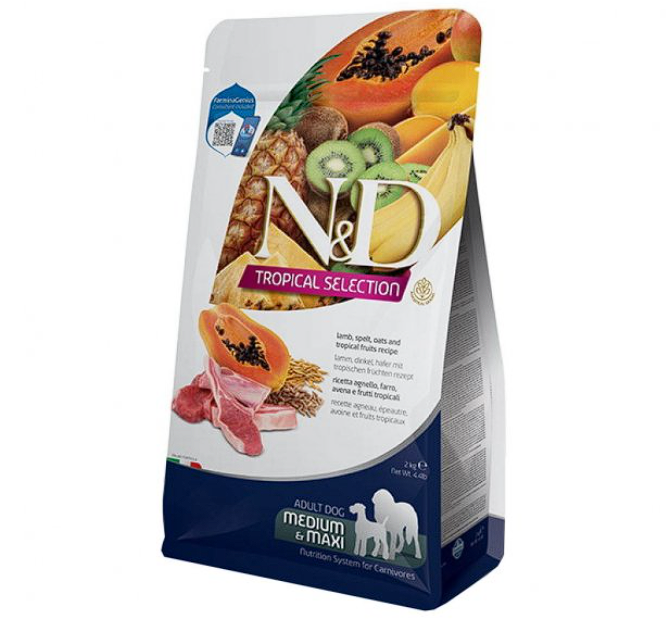 Farmina N&D Tropical Selection Lamb Adult Medium & Maxi Dog — поєднує смак, користь і безпеку для підтримки здоров’я, енергії та активного способу життя вашого улюбленця.