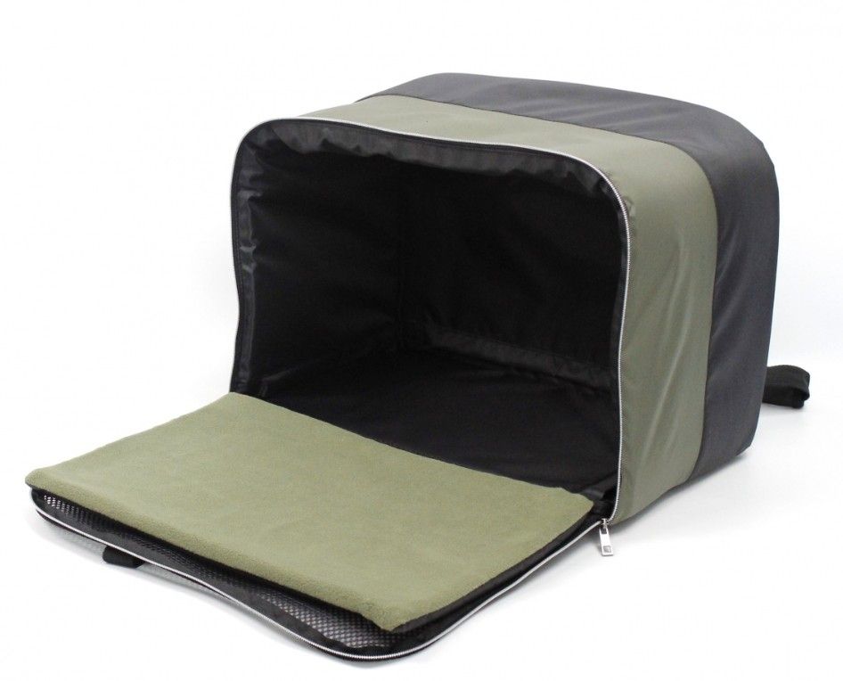 Автосумка з тканини плащівка для малих порід собак і для котів. Має додаткові ремені для кріплення до сидіння. Одна сторона сумки повністю з сітки. Поролоновий наповнювач, килимок виймається