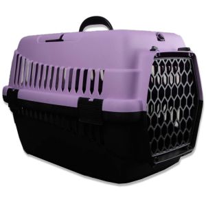 Переноска для тварин бузково-чорна пластик 49х32х35 см до 5 кг