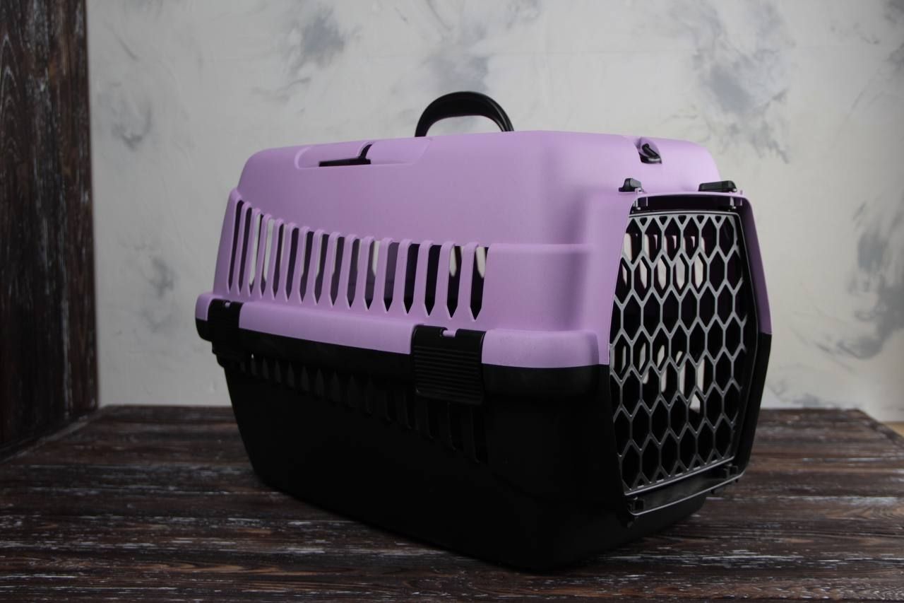 Переноска для тварин бузково-чорна пластик 55х39х36 см до 8 кг