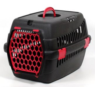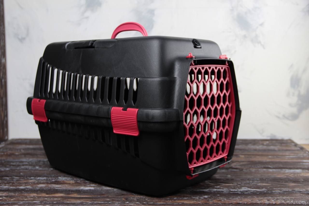 Переноска для тварин чорна пластик червоні двері 49х35х32 см до 5 кг
