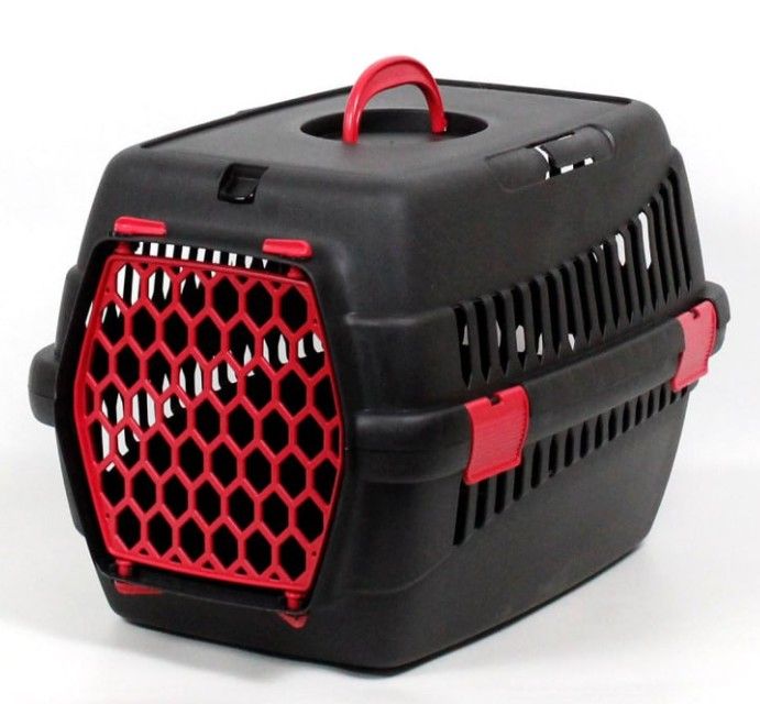 Переноска для тварин чорна пластик червоні двері 55х39х36 см до 8 кг