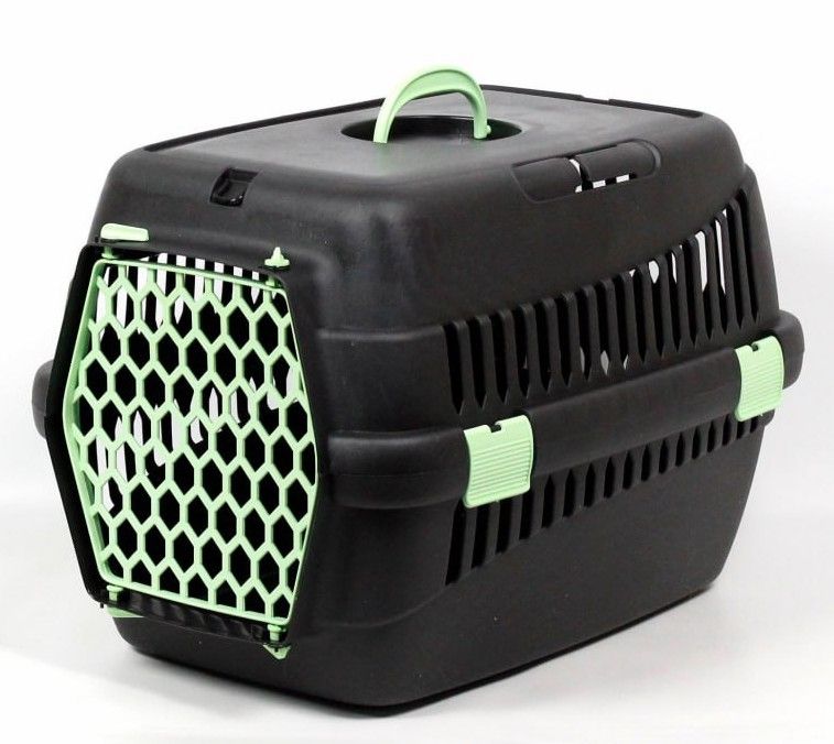 Переноска для тварин чорна пластик салатові двері 49х35х32 см до 5 кг