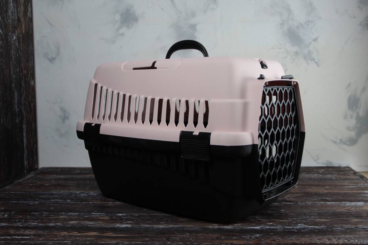 Переноска для тварин Пудрово-чорна пластик 49х32х35 см до 5 кг