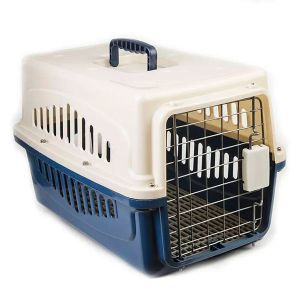 Переноска IATA з металевими дверима синьо-бежева до 30 кг (67x47x46 см)