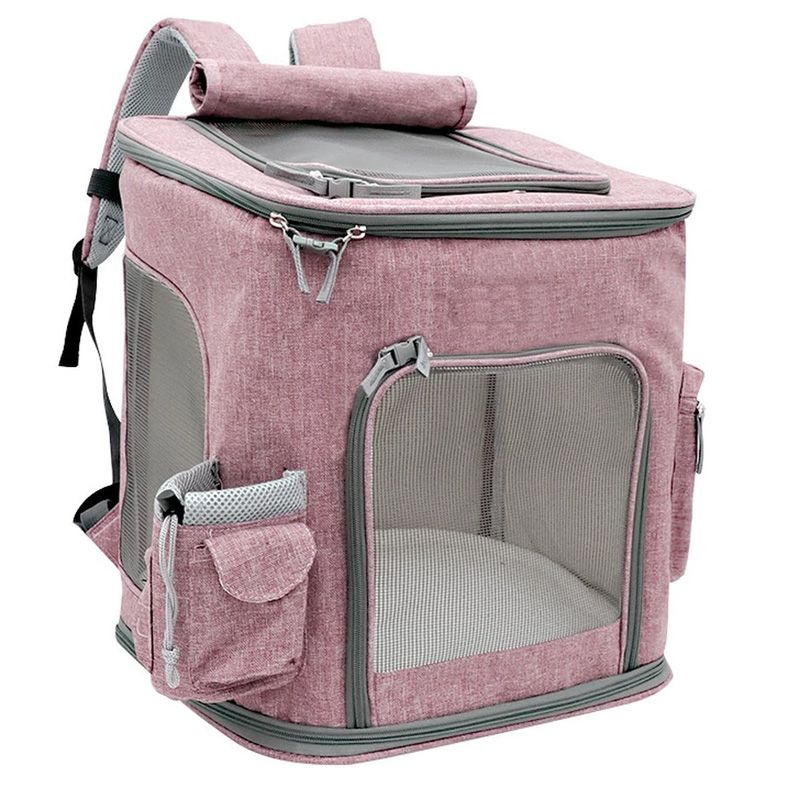Рюкзак-переноска квадратний з сіткою для перенесення тварин, текстиль, 40Х37Х20СМ рожевий